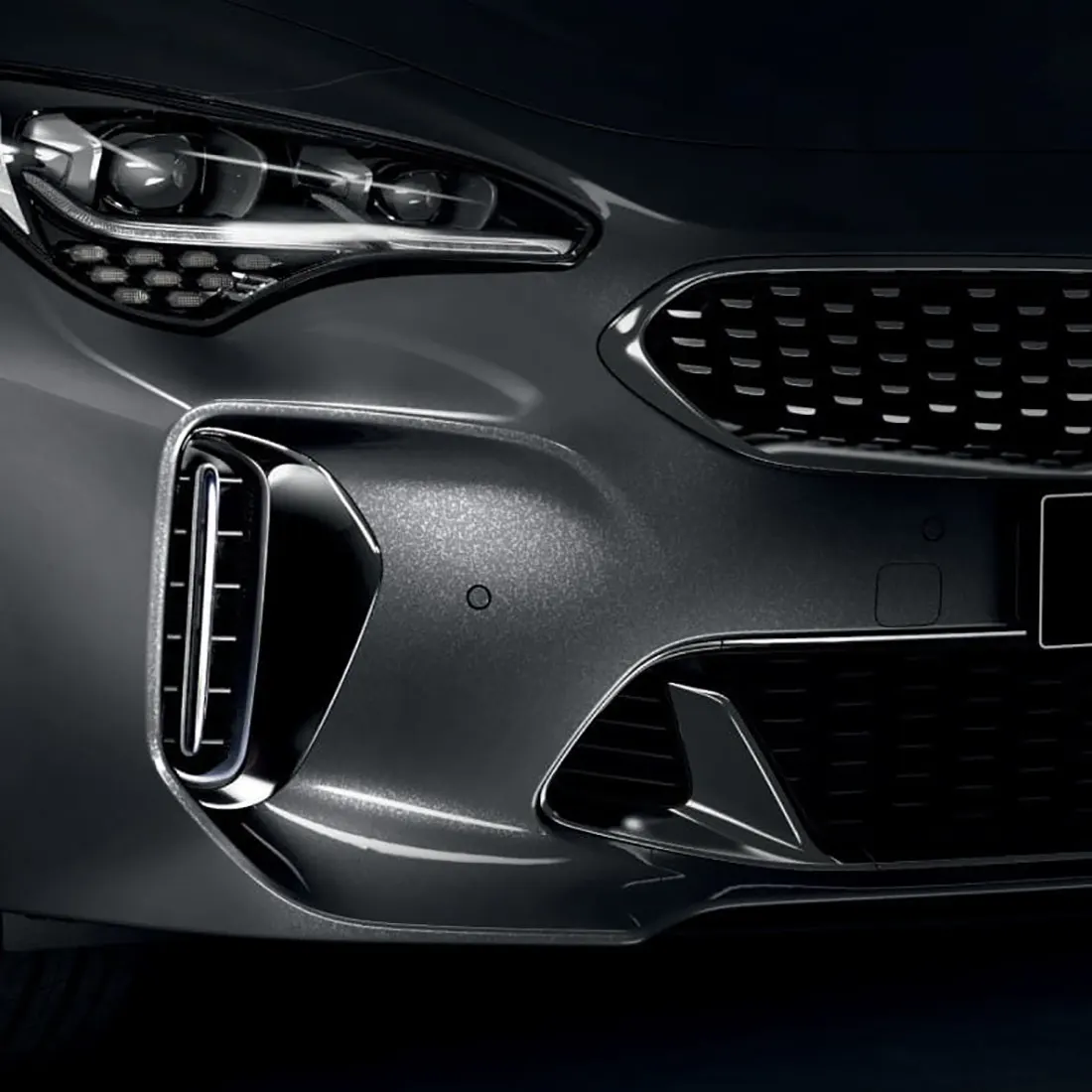 В сравнении с другими моделями Kia фастбэк отличает несколько «приземленный» и вытянутый кузов. Спереди у него размещена стандартная, но немного удлиненная радиаторная решетка. То же самое касается и головной оптики со светодиодным наполнением. Передний бампер дополняется расширенным нижним воздухозаборником и достаточно крупными боковыми. За колесными крыльями располагаются отверстия для выхода воздушных потоков. Вдоль верха дверцы багажного отсека пролегает овальный спойлер, который визуально совмещен с компактной светодиодной оптикой треугольной формы и со скругленными углами. На заднем бампере присутствуют диффузор и сдвоенные патрубки выхлопной системы, закрепленные по обоим бокам.